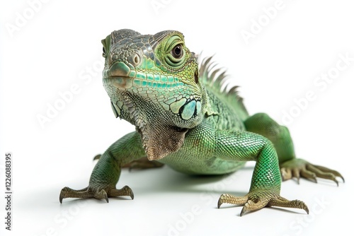 iguana, lizzard, reptile, green, scale, animal, wildlife, pet, exotic, closeup, detailed, nature, white background, sharp, bright, eye, texture, skin, vibrant, alert, observant, captivating, reptilian, scaly, tropical