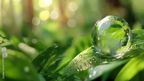 globe, leaf, environment, nature, earth, sustainability, ecology, conservation, planet, dew, sunlight, forest, hope, serenity, protection, climate, ecosystem, future, awareness, campaign, education, responsibility, biodiversity, growth, harmony