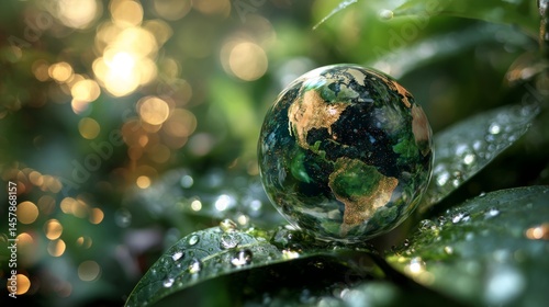 globe, leaf, environment, nature, earth, sustainability, ecology, conservation, planet, sunlight, dew-drop, forest, serenity, hope, protection, climate, future, awareness, growth, life, harmony, energy, renewal, balance, ecosystem
