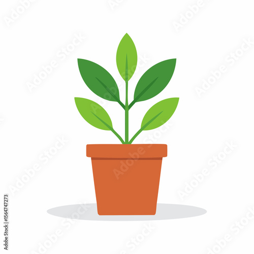 Vibrant Green Plant in Terracotta Pot Simple Houseplant Illustration