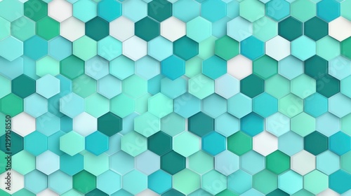 Vibrant Hexagonal Pattern of Blue Green Geometric Shapes on Background