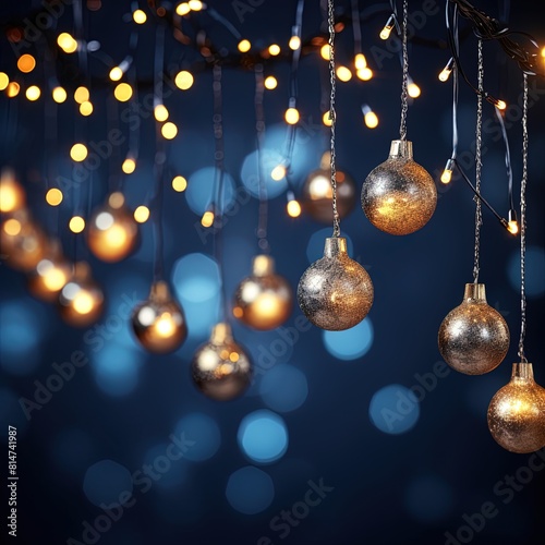 Vibrant holiday lights shine against a backdrop of blue. Colorful Christmas lights twinkle on a serene blue background.