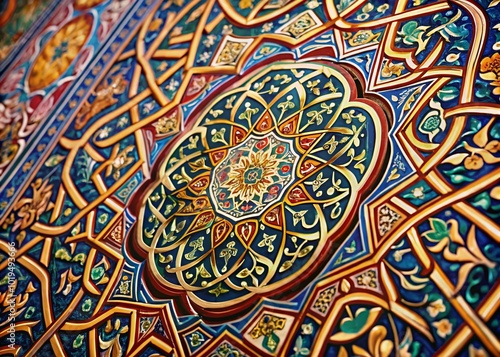 calligraphy, pattern, decorative, design, culture, tradition, spiritual, creativity, aesthetic, abstract, ornate, wallpainting, artwork, heritage, faith, beauty, elegance, typography, middle eastern, symbolism, craftsmanship, unique, contemporary, historical, religious, inspiration, grace, harmony, texture, detail, geometric, spirituality, colourful, intricate, composition, background, print, modern art, artistic, design element