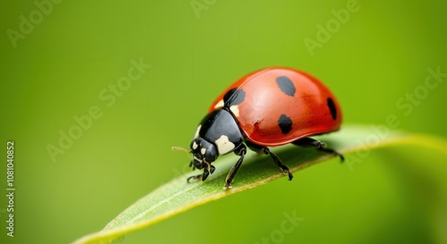 Vibrant ladybug perched on green leaf in natural habitat