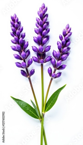Vibrant lavender sprigs, meticulously isolated on bright white, detail, decoration, plant
