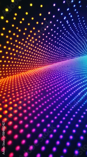 Vibrant LED lights create an engaging abstract pattern, gradually transitioning between warm and cool colors for an impressive visual effect. The display evokes creativity and 80s nostalgia.