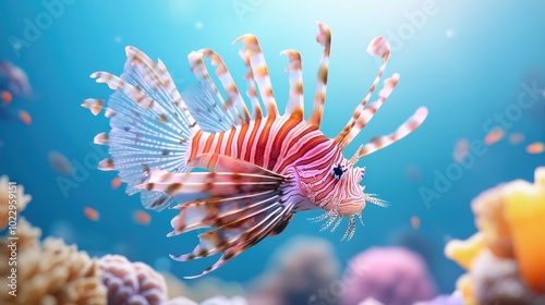 Vibrant Lionfish Swimming Among Coral Reefs