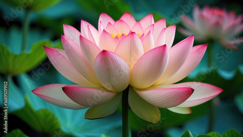 lotus flower, vibrant, blooming, pink petals, white petals, green leaf, aquatic plant, floral, natural, serene, peaceful, water lily, colourful, nature scene, botanical, flowering plant, tranquil, garden, elegant, fresh, seasonal, decorative, ornamental, habitat, no people