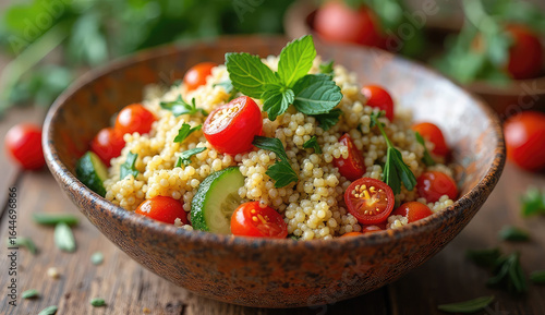 Vibrant Mediterranean Quinoa Salad in Rustic Bowl