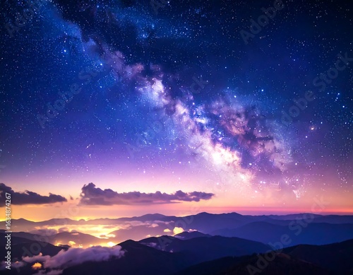 lactic, way, galaxy, star, night, sky, mountain, sunset, mist, cloud, purple, blue, orange, dark, space, cosmic, landscape, nature, celestial, astronomy