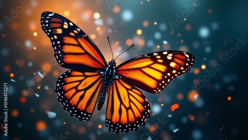 monarch butterfly, butterfly, insect, lepidoptera, vibrant, orange, black, white, bokeh, abstract, background, nature, wildlife, closeup, macro, colourful, pattern, wing, flying, isolated, beauty, art, illustration, design, decorative, element, bright, light, dot, dreamy, soft, fantasy, magical, atmosphere, elegance, detail, studio shot, graphic, render, digital artwork, wallpaper, seasonal, spring, summer, transformation, metamorphosis