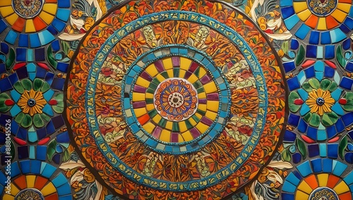 Vibrant Mosaic Mandala Artwork Abstract Background, Traditional Patterns and Intricate Designs