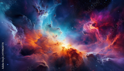Vibrant Nebula With Colorful Cosmic Clouds And Starry Sky Creating Mesmerizing Space Scene Full Of Vivid Hues And Intricate