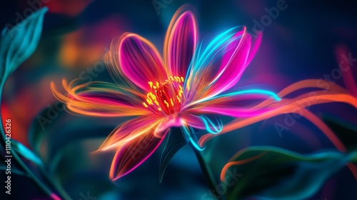 Vibrant neon flower with glowing petals.