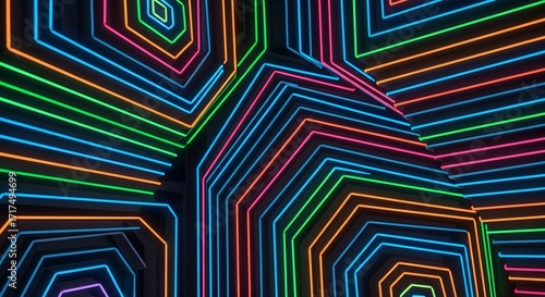 neon, geometric, pattern, abstract, background, vibrant, colourful, line, design, modern, light, glow, energy, digital, art, illustration, creative, bright, electric, futuristic, tech, cyber, space, tunnel, perspective, illusion, optical, labyrinth, labyrinth, structure, shape, form, symmetry, repeating, texture, surface, wall, interior, decor, lighting, illumination, radiant, spectrum, rainbow, hue, gradient, dynamic, movement, flow