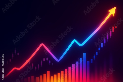 graph, arrow, trend, growth, success, financial, neon, chart, diagram, progress, upward, stock exchange, investment, datum, statistic, visual, illustration, abstract, modern, digital, gradient, colourful, bright, positive, opportunity, future, business, economy, finance, analysis, report, presentation, information, development, improvement, performance, strategy, planning, vision, leadership, marketing, sale, profit, revenue, income, earning, gain
