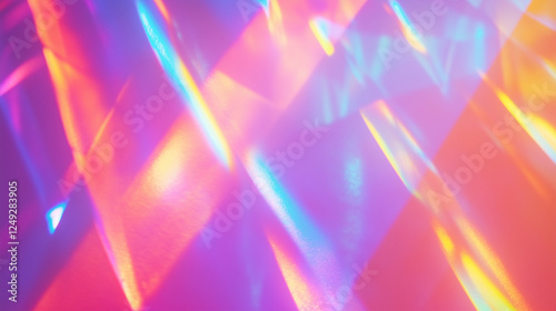 Vibrant neon light reflections with prism effect perfect for futuristic backgrounds, digital art, and creative design projects