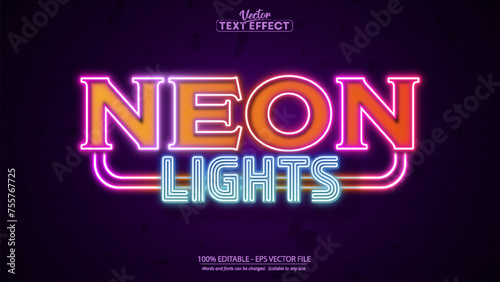 Vibrant neon lights text effect on dark background