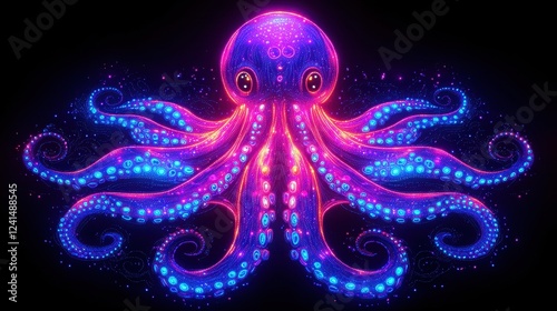 Vibrant Neon Octopus Glowing Tentacles Art Design Digital Artwork Illustration