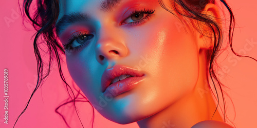 neon, portrait, woman, colourful, lighting, fashion, vibrant, beauty, glow, make-up, style, bright, artistic, trendy, modern, high-coloured, model, expressive, bold, eyelash, lip, glossy, warm, cool, shadow, contrast, captivating, elegance, muse, photo, hair, sophisticated, creative, allure, aesthetic, dynamic, spotlight, soft, highlight, contemporary, radiant, chic, glamour