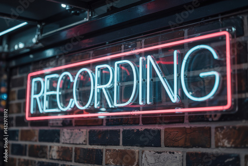 neon, recording, signs, urban, modern, lighting, pink, blue, technology, music, studio, led, nightlife, glow, brick, decor, entertainment, audio, creative, sound, vibrant, artistic, broadcast, media, visual, trendy, signage, metropolitan, aesthetic, contemporary, stylish, culture, innovative