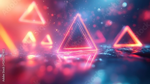 neon, triangle, digital artwork, futuristic, glowing, reflective, colourful, technology, abstract, light, design, creativity, illuminated, atmosphere, energy, visualisation, shape, modern, night, scenery, ambience, dynamic, luxury, entertainment, festival, excitement, motion, beauty, aesthetic, innovation