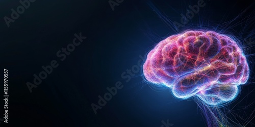 Vibrant neural connections in a digital brain on dark background neurodiversity autism concept