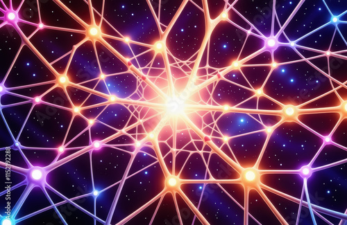 neural, network, vibrant, glowing, connection, abstract, digital, technology, science, datum, brain, communication, pattern, system, light, interconnected, web, node, energy, design, colourful, electric, cyber, matrix, futuristic, aglow, bright, starry, cosmos, universe, space, signal, impulse, visualisation, concept, illustration, complexity, dynamic, flow, grid, innovation