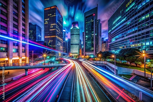 Vibrant Night Lights Long Exposure Photography, Abstract Colorful Backgrounds, Dark Cityscape, Illuminated Streets, Glowing Neon, Light Trails, Night Photography, City at Night,