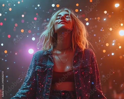 nightlife, dancing, girl, light, glittering, vibrant, entertainment, liveliness, energy, positive, party, club, dance, music, neon, crowd, joy, celebration, excitement, illuminated, colourful, disco, dancefloor, clubbing, lively, lady, woman, beauty, smile, happiness, fun, glamour