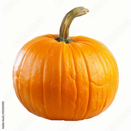 Vibrant orange pumpkin with a sturdy stem, isolated on white, embodying the essence of autumn harvest and festive celebrations