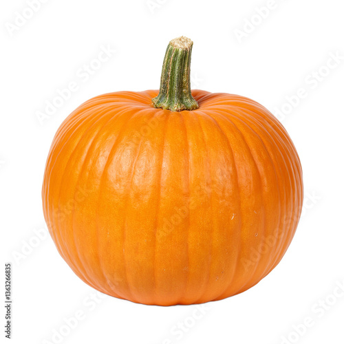 Vibrant orange pumpkin with glossy skin and lush green stem Ideal for fall and harvest themed designs