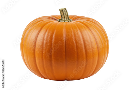 Vibrant orange pumpkin with textured skin, isolated on a white background, ideal for autumn themes
