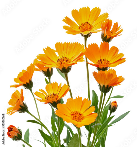 Vibrant orange spring flowers blooming, cut out - stock png.