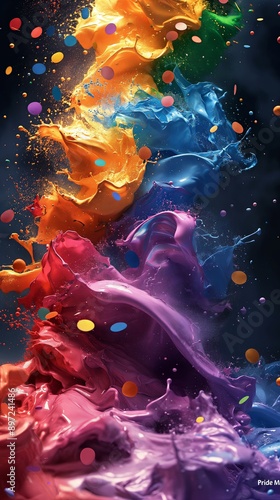Vibrant Paint Splash Explosion with Confetti, Perfect for Pride Month and Celebratory Events