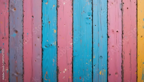 Vibrant Painted Wood Panel Background in Pink, Blue, and Yellow