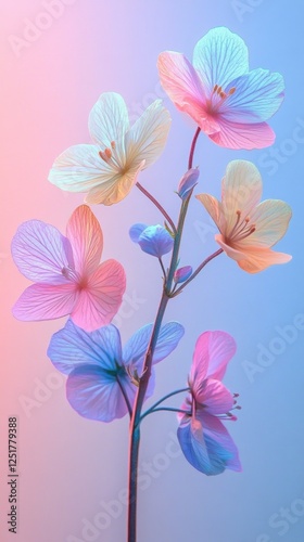 Vibrant pastel flowers on gradient background: striking blend of colors in botanical art