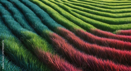 Vibrant Patterns of Undulated Grass in Alternating Stripes of Colorful Green and Red Shades
