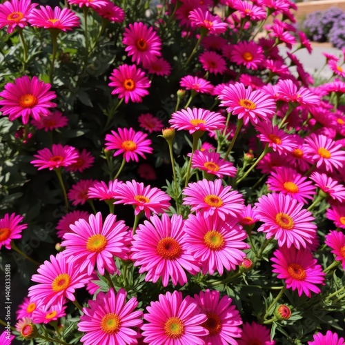 Vibrant pink chrysanthemums in full bloom, spring garden, petals, fresh, photography