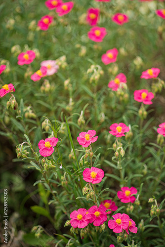 Vibrant Pink Flowers Blooming in a Lush Garden, Showcasing Nature's Beauty During the Warmth of Springtime.