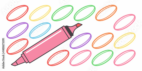 Vibrant Pink Marker Surrounded by Colorful Ovals