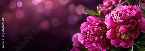Vibrant pink peonies against a bokeh background.