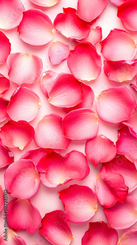 Vibrant pink rose petals arranged in a seamless, textured pattern, ideal for backgrounds or romantic designs.