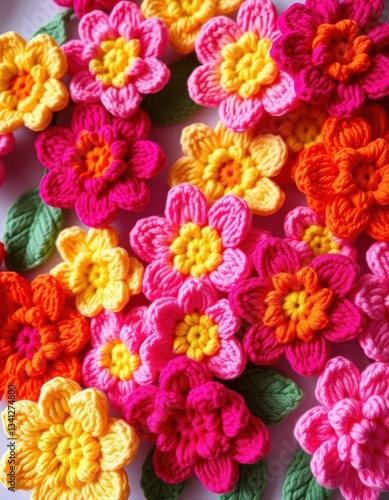 hobby, photo, textile, image, design element, craft, hand-made, bricolage, art, threaded, crochet, orange, artisan, needlecraft, floral, texture, pattern, flower, colourful, home decor, yellow, floral pattern, pink, bright, spring, background, bloom, summer, closeup