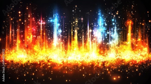 abstract, rainbow, energy, flow, vibrant, stream, glowing, plasma, illustration, spectral, light, star, christmas, space, night, bright, fireworks, vector, celebration, design, holiday, explosion, fire, colours, background, party, star, glow, black, sky, shiny, flames