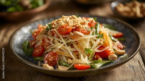 Vibrant Plate of Som Tam with Fresh Ingredients