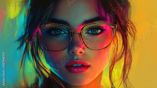Vibrant portrait of a stylish woman studio digital art colorful close-up
