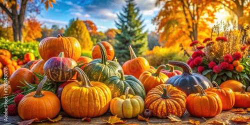 Vibrant Pumpkins in Autumn Setting Capturing the Essence of Fall Harvest and Seasonal Decor