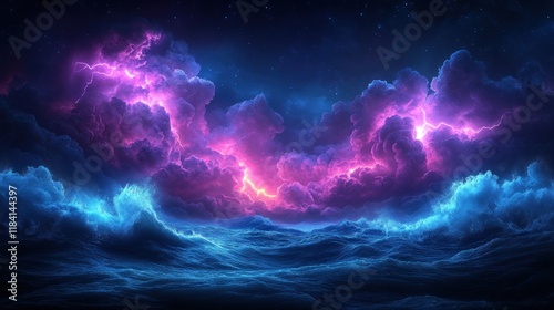 night, sky, cloud, storm, lightning, purple, blue, dark, energy, fantasy, vibrant, colourful, dramatic, mystical, atmospheric, electric, power, thunder, weather, cosmic, nebula, galaxy, space, abstract, art, illustration, digital, design, background, texture, wallpaper, scene, landscape, horizon, ocean, wave, glow, light, bright, colours, intense, beautiful, majestic, awe, wonder