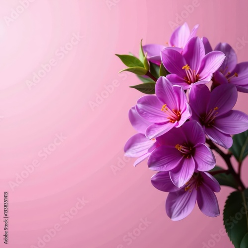 Vibrant purple blossoms against soft pink backdrop, background, summer, flower arrangement